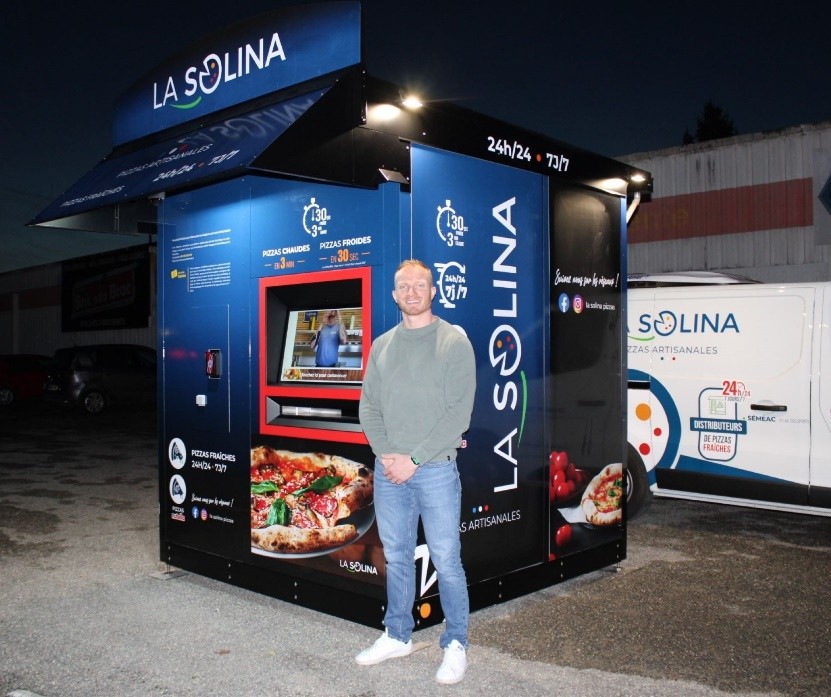 Installé en face du Leclerc, près du magasin « Bric à Brac », ce jeune entrepreneur détenteur d’un CAP de boulanger, ancien parachutiste du 1er RHP de Tarbes, formé par un compagnon du Tour de France, propose désormais une variété de 15 pizzas chaudes (en 3min) ou froides délivrées en 30s à choisir sur le grand écran intuitif de son distributeur accessible 24h/24, 7 jours sur 7, rempli quotidiennement de pizzas fraîches. De style napolitain, la pâte de ces pizzas artisanales authentiques, 100 % françaises, est confectionnée à la main à Tarbes (Boulevard Debussy) et garnie de produits frais.