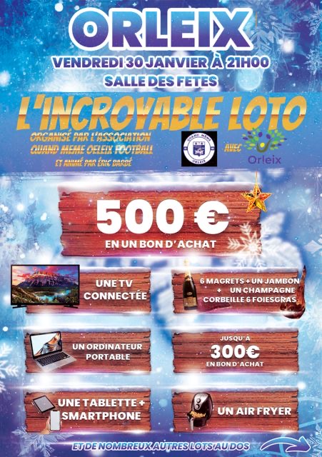 Vous êtes ici : Accueil > LOTO DU QUAND MEME ORLEIX FOOTBALL VENDREDI 30 JANVIER 2026