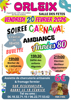 Vous êtes ici : Accueil > SOIREE CARNAVAL VENDREDI 20 FEVRIER 2026