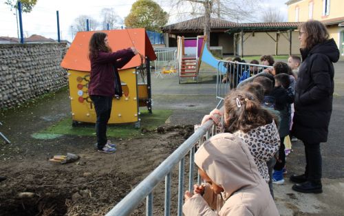 Le 20 février dernier, veille des vacances, régnait une belle effervescence dans la cour de l’école Lucie Aubrac. Engagé dans une démarche globale de développement durable, cet établissement labellisé « E3D » a lancé, en partenariat avec la Maison de la Nature de Puydarrieux et la mairie, un chantier de plantations d’arbres. Financé en partie par la région et par l’agence de l’eau Adour Garonne, ce projet pédagogique a permis aux enfants, outre l’acquisition d’un vocabulaire spécifique, de prendre conscience le l’importance des haies champêtres, de la biodiversité, d’observer, d’identifier quelques essences et de manipuler feuilles d’églantiers, de chênes… avant de les dessiner sous la bienveillante houlette d’Aurélie et Anaïs, animatrices « d’arbre et paysage 65 ». Chaque classe a ensuite procédé à la plantation de 6 arbres : tilleuls et érables (2 en maternelle et 4 en élémentaire). Nos petits jardiniers pourront suivre l’évolution au fil des saisons et à terme profiter de leur ombre et de la fraîcheur apportée au côté très souvent minéral des cours d’école. Cette action prolonge une réflexion éco responsable sur le tri des déchets avec le Symat, le ramassage des papiers, la création d’un potager grâce au service civique (hélas absent cette année).