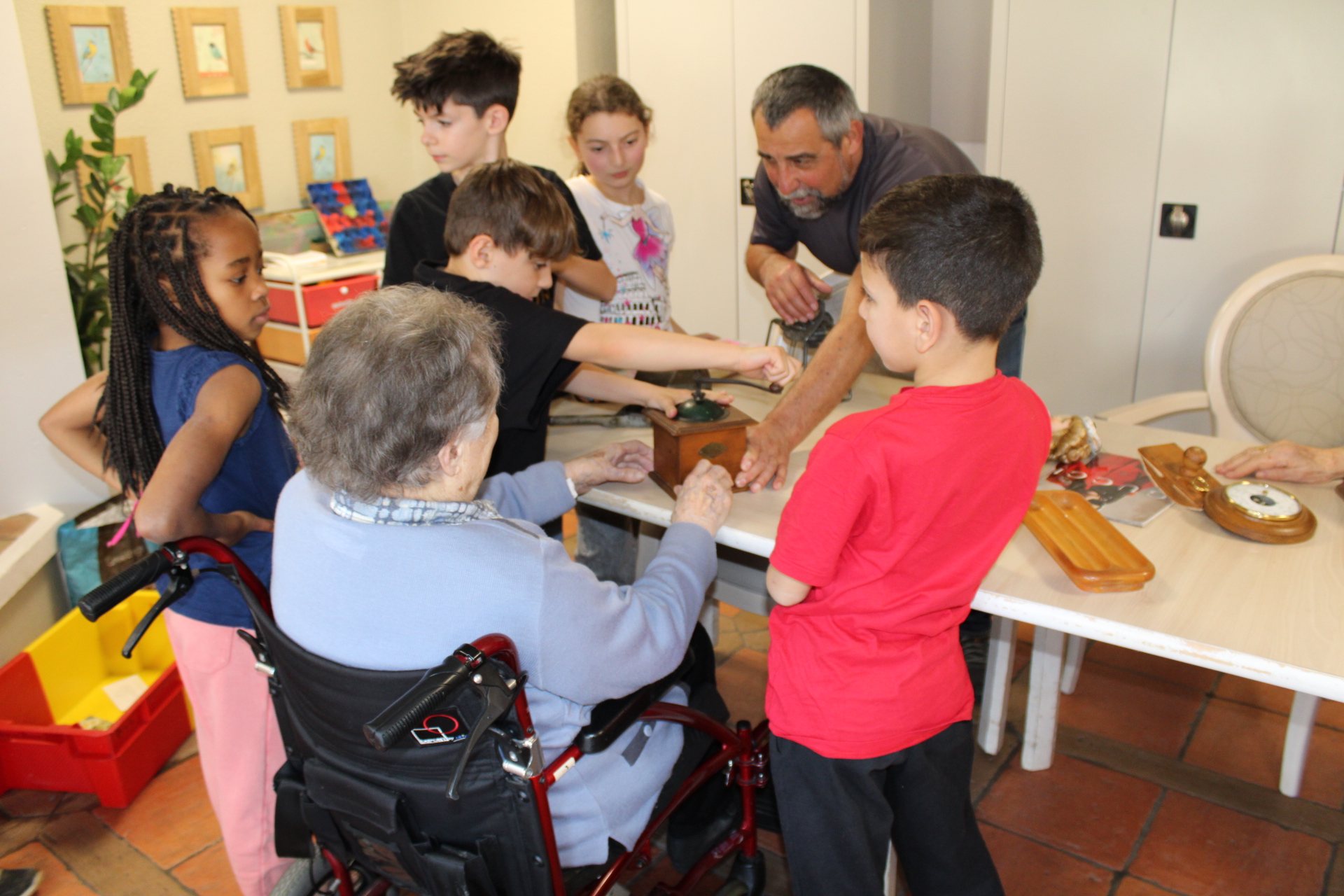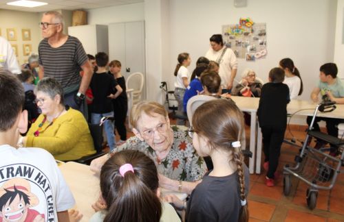 En ce mois de mars, les résidents attendaient impatiemment les enfants pour leur faire découvrir des objets anciens et leur en expliquer l’utilité et le fonctionnement. Quand les plus jeunes apportent leur curiosité, les plus anciens leur expérience, leurs souvenirs, on assiste avec bonheur à de grands moments de joie et de partage. Un bon goûter attendait tout ce petit monde avant de reprendre le chemin de l’école.
