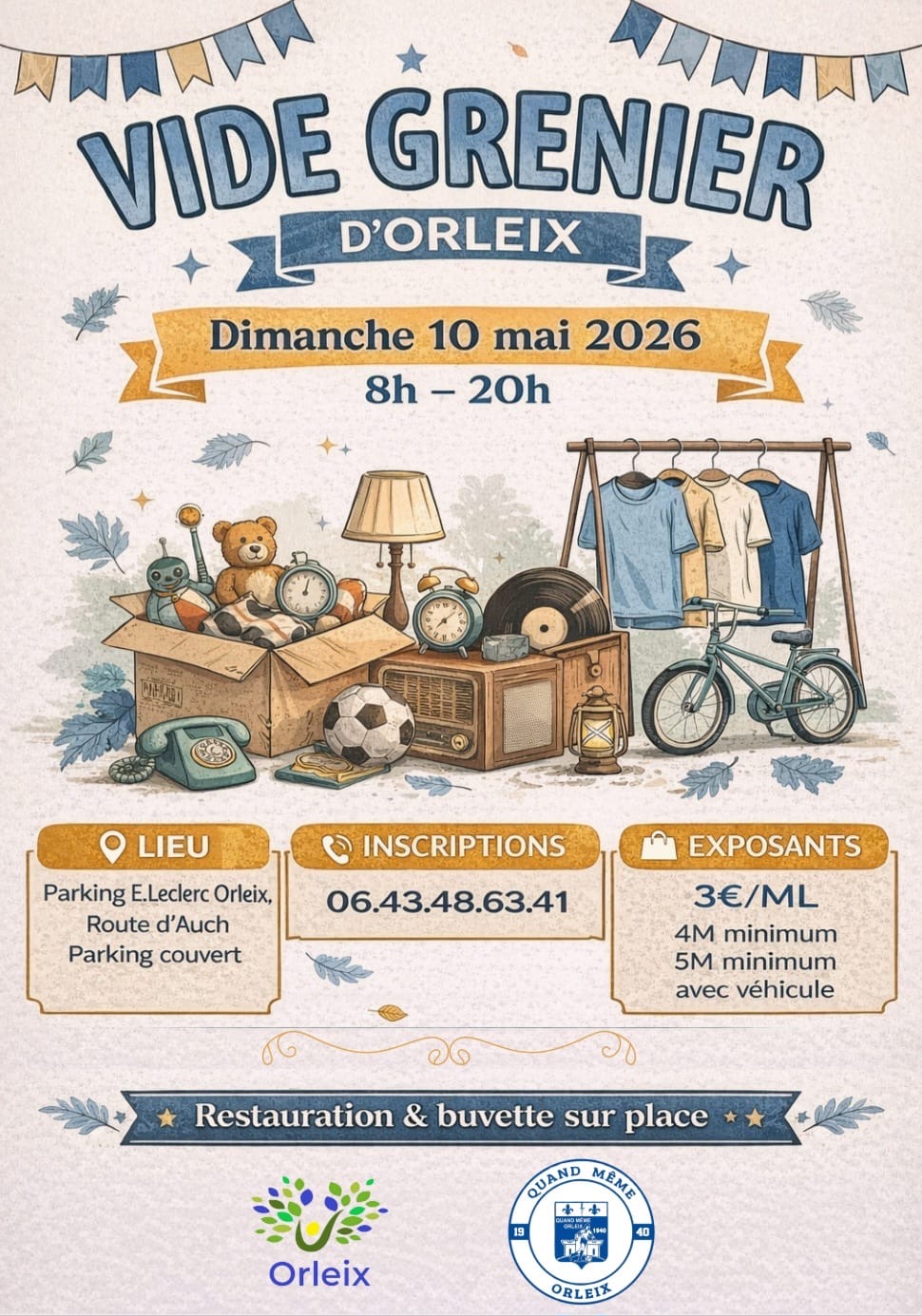 Vous êtes ici : Accueil > VIDE GRENIER ORGANISE PAR LE QUAND MEME ORLEIX FOOTBALL